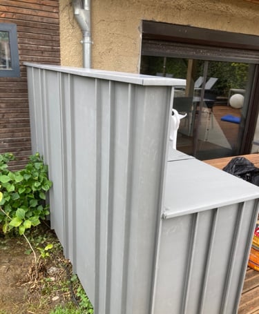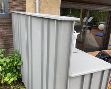 Projet d'une cuisine extérieure; habillage en zinc prépatiné Quartz